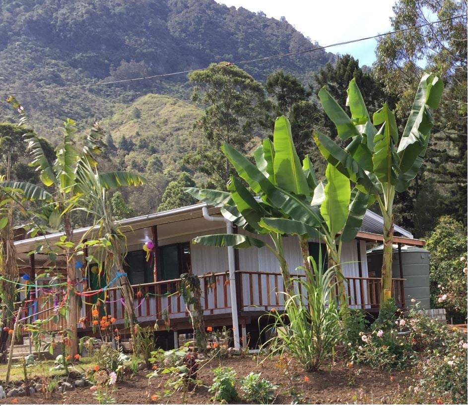 The New Cookhouse at Goglme, with vegetable and flower garden already planted. A Good Spirit guarding the house just to reinforce its Christian blessing ! The front verandah– note the high standard of carpentry of the local PNG tradesmen. There is a Salesian Technical College in the Simbu offering technical training.